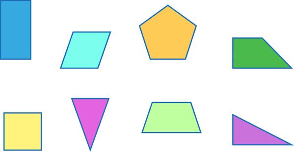 Imagen de algunas figuras geométricas que puede ser usada con distintos fines pedagógicos, por ejemplo para identificar, estimar y medir los distintos tipos de ángulos existentes en estas figuras.