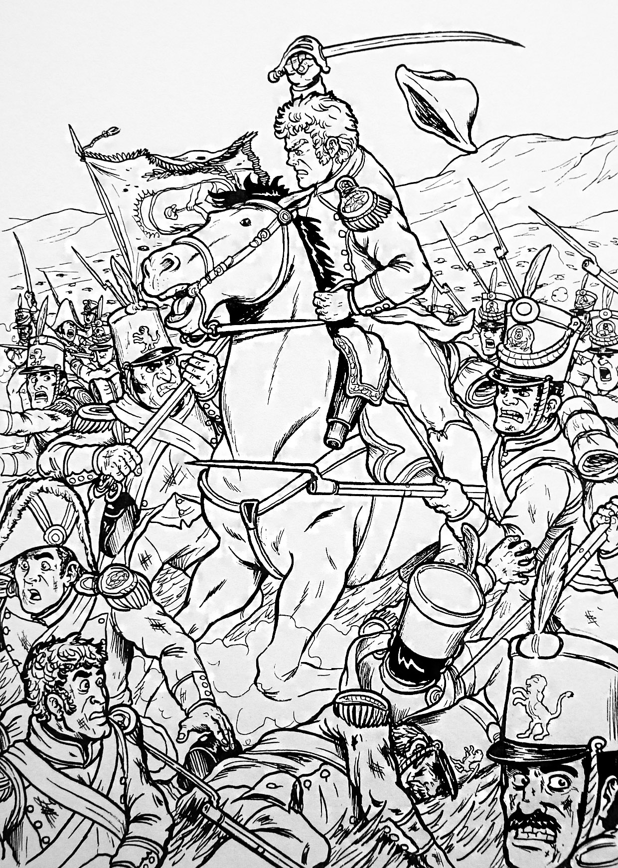 Ilustración que representa la batalla de Chacabuco (blanco y negro)