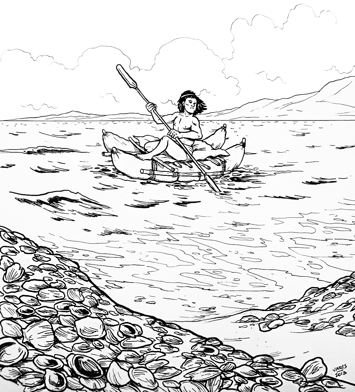 Dibujo que representa a los changos (blanco y negro)