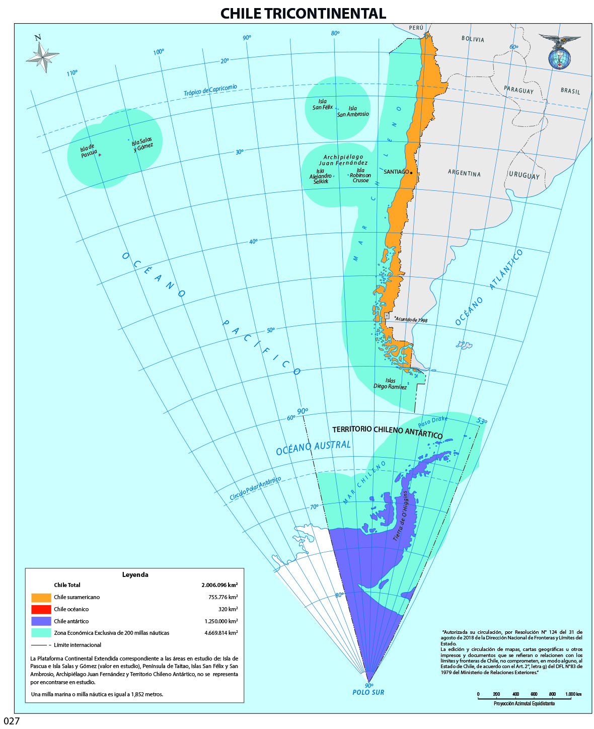 Mapa que muestra la tricontinentalidad de Chile