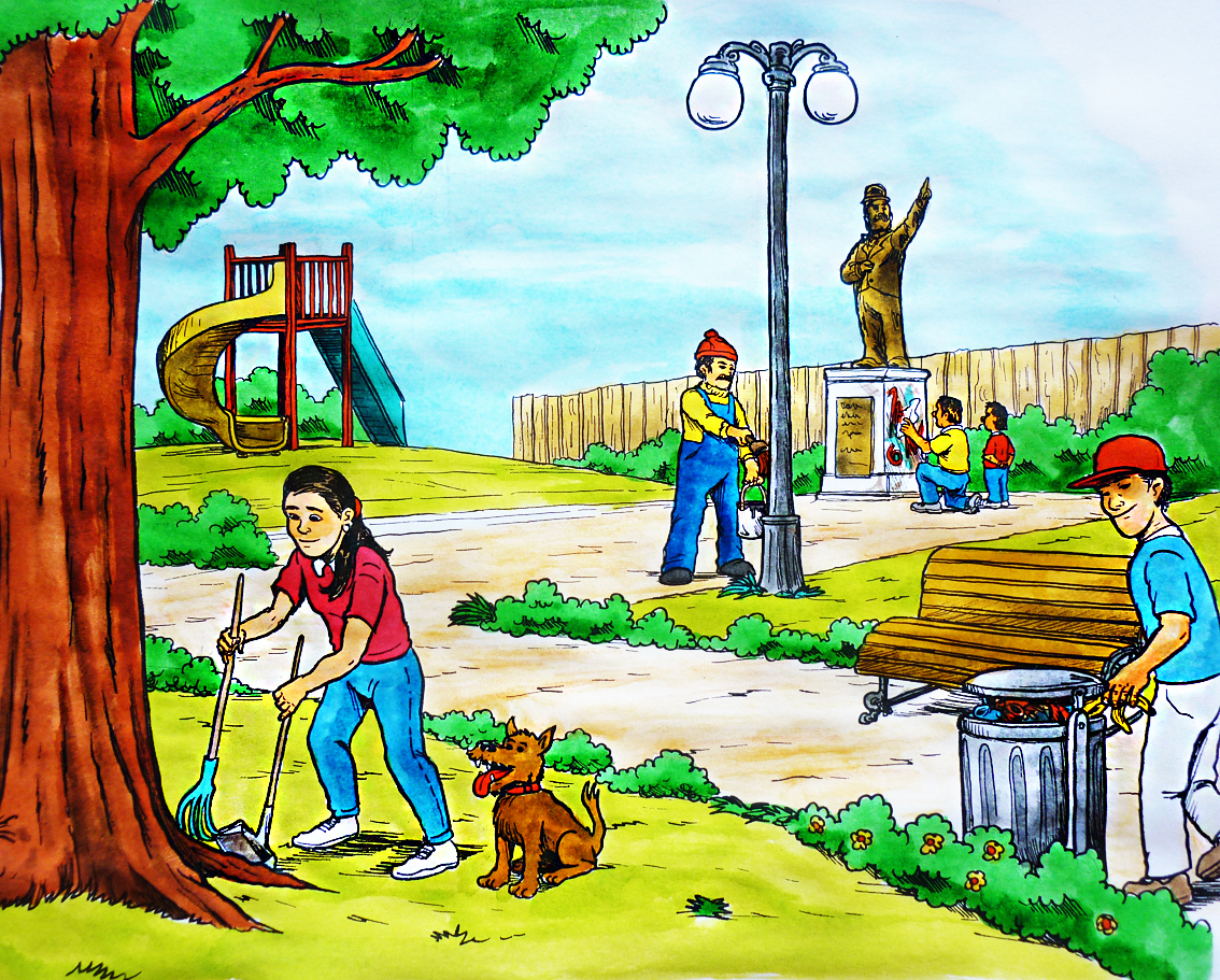 Ilustración que muestra el cuidado de los espacios públicos (color)