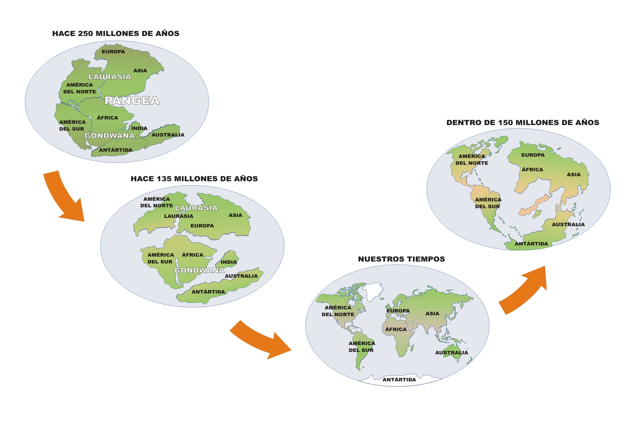 Imagen con la evolución de los continentes