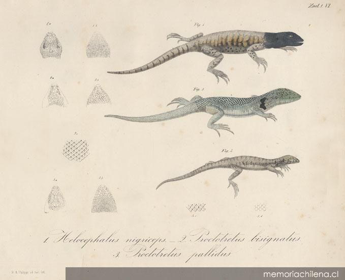 Dibujo de animales Helocephalus nigriceps Proctotretus bisignatus Proctotretus pallidu en Memoria Chilena