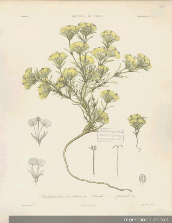 Dibujo de planta Cruckshanksia montiana en Memoria Chilena