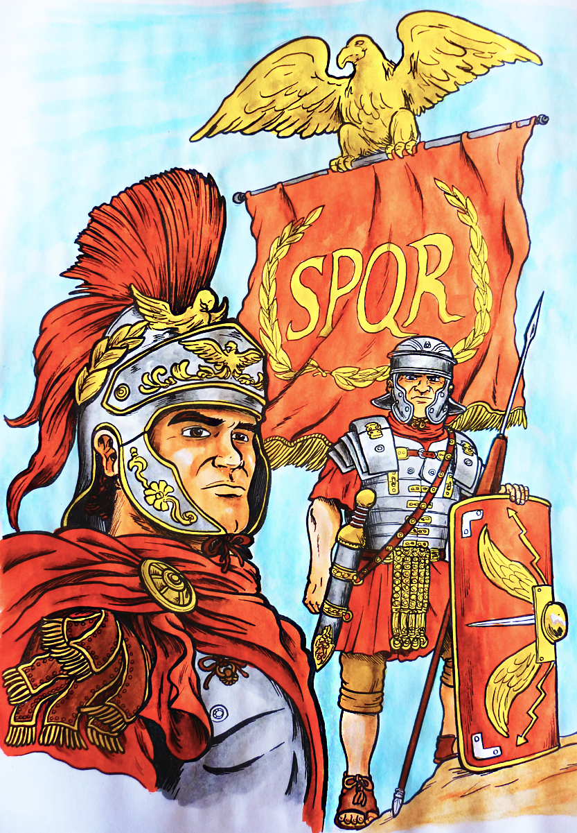Ilustración que representa a soldados romanos (color)