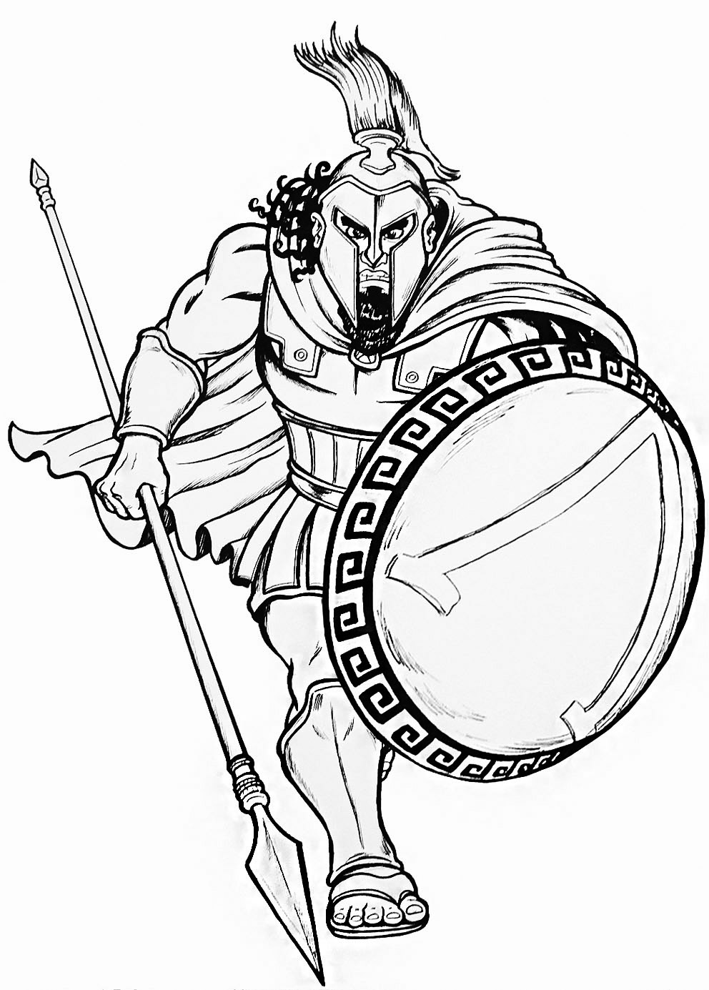Ilustración que representa a un soldado espartano (blanco y negro)