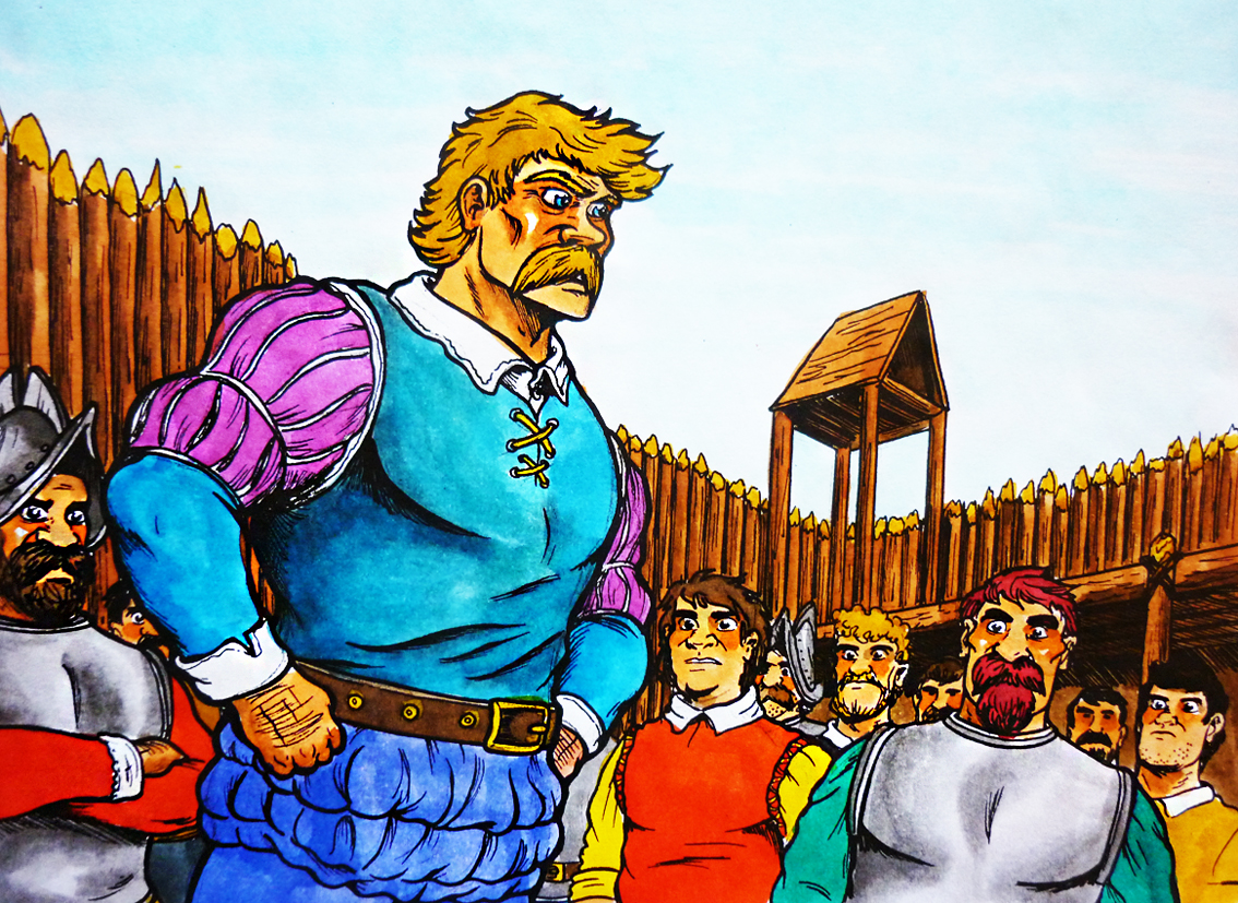 Ilustración que representa un fuerte español durante la conquista de América (color)