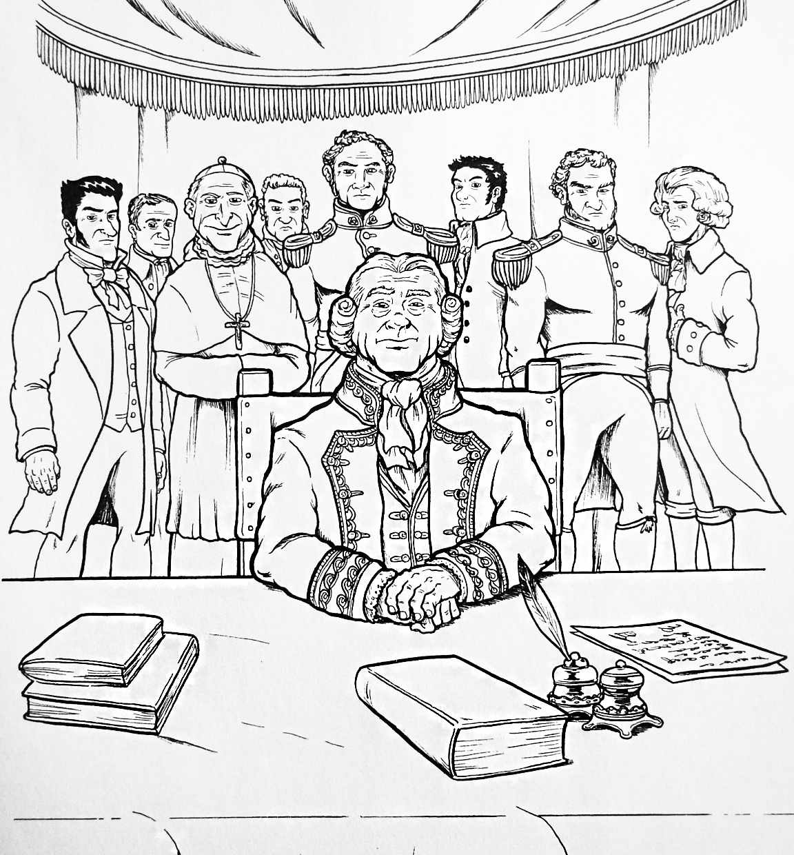 Dibujo de la Primera Junta Nacional de Chile (blanco y negro)
