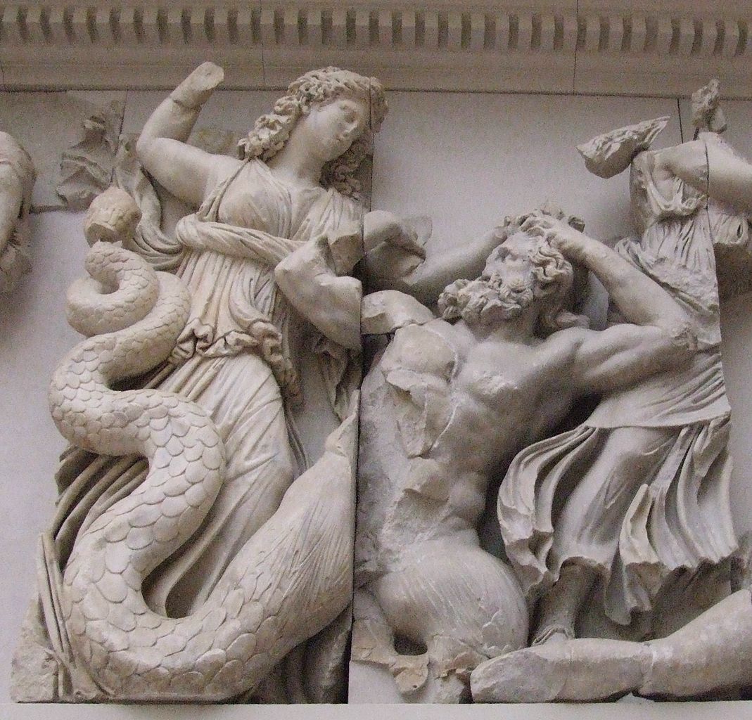 Observan esculturas de seres mitológicos y dioses de la antigüedad
