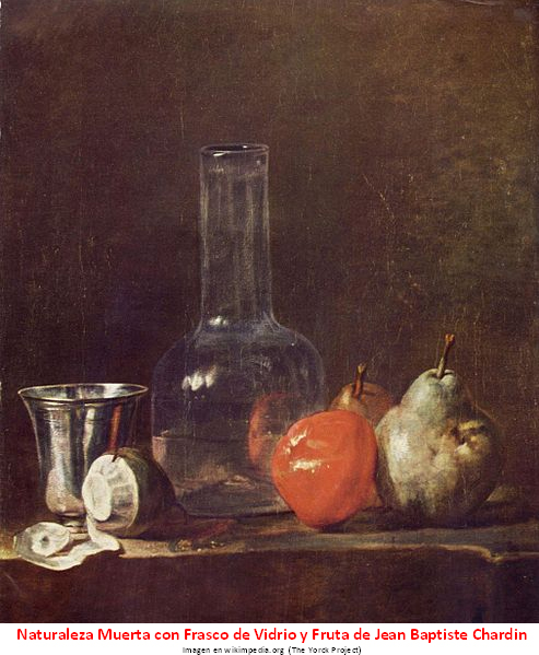 Naturaleza Muerta con Frasco de Vidrio y Fruta de Jean Baptiste Chardin