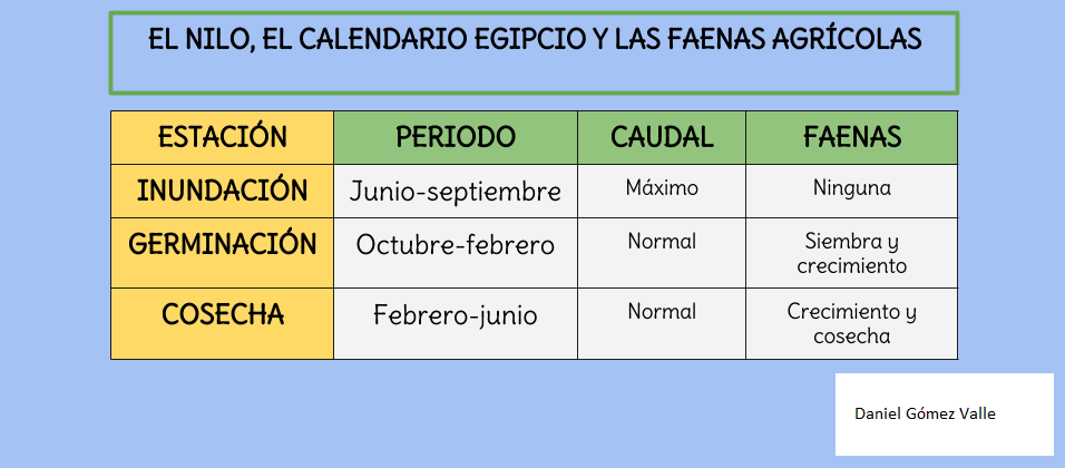 Calendario agrícola de acuerdo al caudal del río Nilo