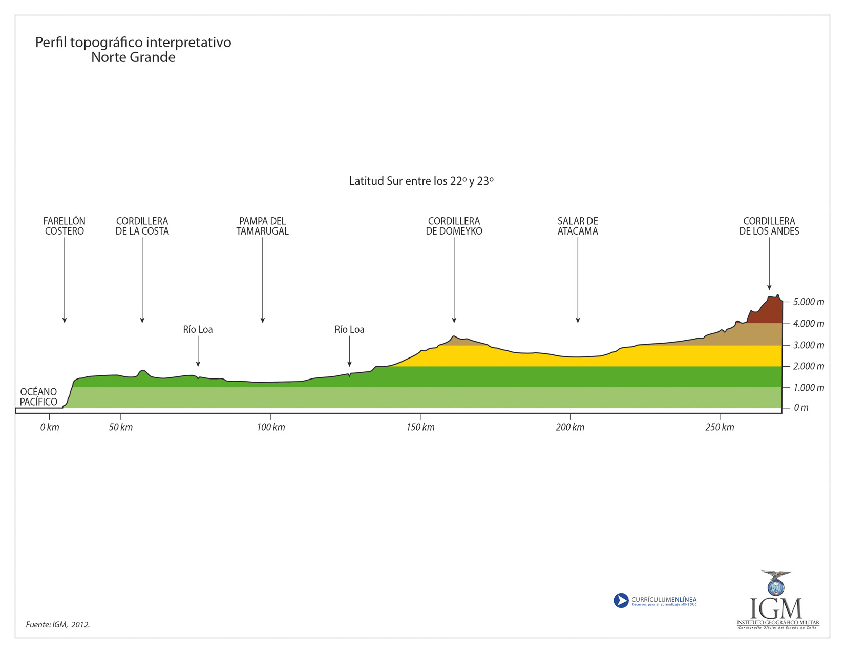 Perfil topográfico del Norte Grande a color