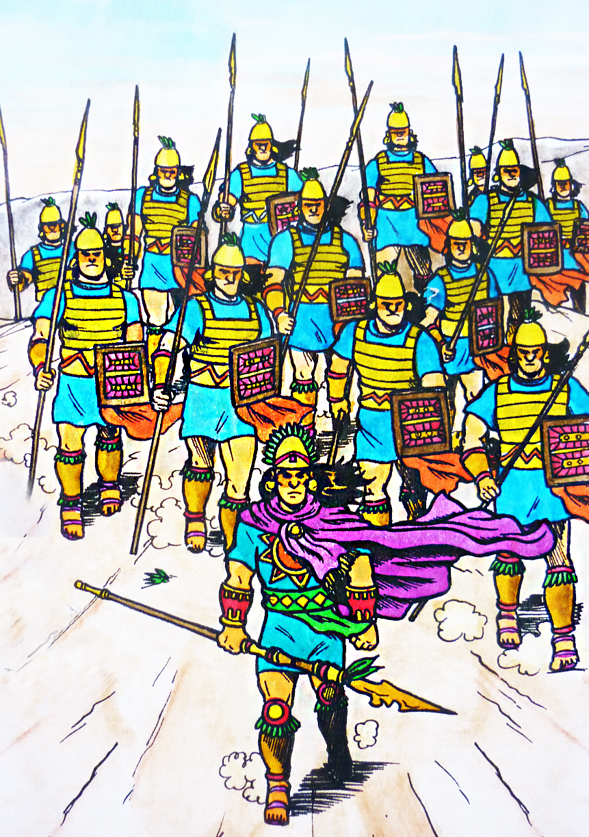 Dibujo que representa la conquista de los incas en Chile (color)