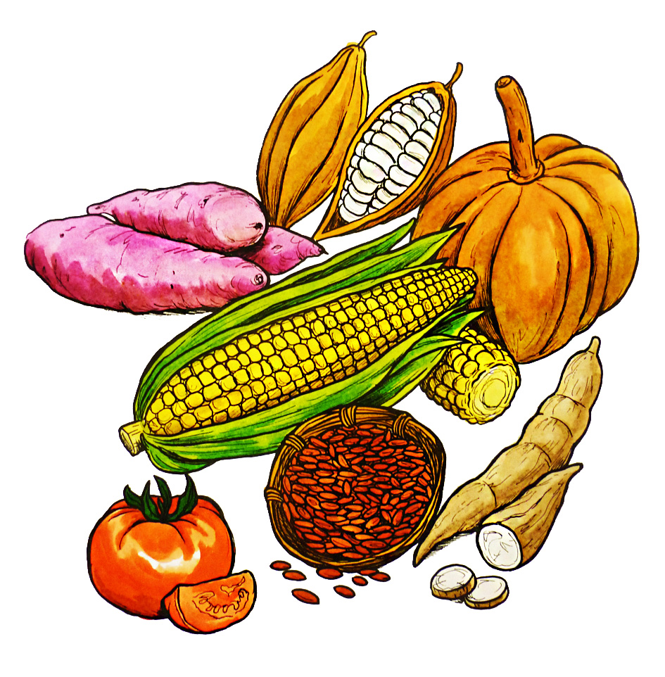 Dibujo de los productos agrícolas maya a color