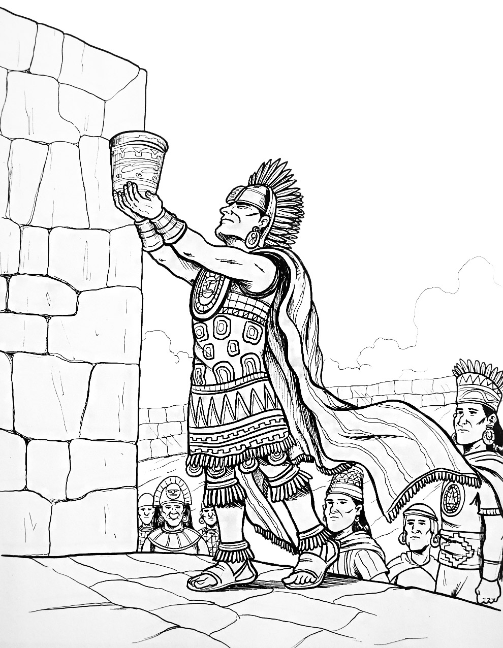 Imagen con rito religioso de los incas (blanco y negro)