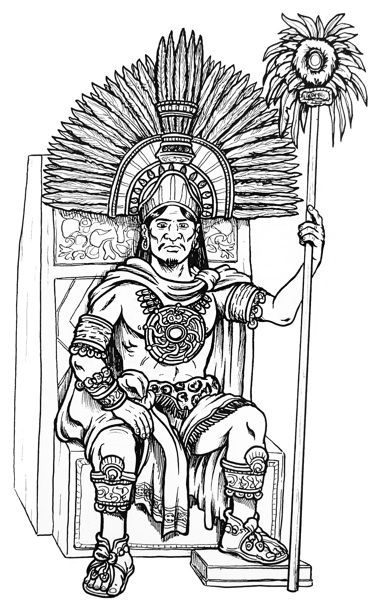 Dibujo de un rey azteca o Tlatoani en blanco y negro